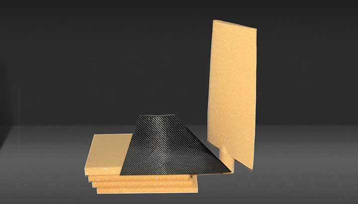简单的夹层结构由三部分组成:面板,芯材和胶接,通过胶接在前面两个组分之间传递载荷。夹层结构能够达到的作用是通过让轻质、有一定厚度的芯材承受剪应力,同时将两个相对比较坚韧、薄的承载面板隔开。这和工字梁的肋板将上下缘隔开的道理几乎是一样的。芯材和肋板充担相同的结构功能,即承受横向载荷。当然芯材是承受各个方向的横向载荷,但是肋板只能承受梁方向内的横向载荷。这样,通过增加芯材的重量,通常也就是几个百分点,大大提高结构承载能力。